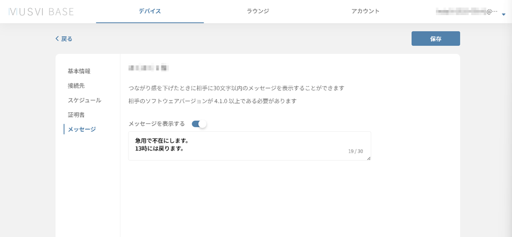- メッセージを表示するをオンにし、下部の枠にメッセージを入力し保存。