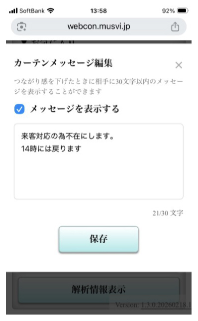 3. メッセージを表示するをオンにし、枠内にメッセージを入力し保存。