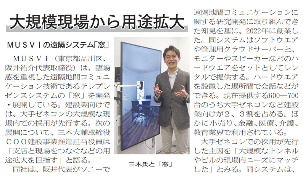 出雲市の遠隔診療実証実験において、MUSVIのテレプレゼンスシステム「窓」が導入され、地域医療を支える新たな取り組みとして山陰中央新報に紹介されました。(2026.1.20 山陰中央新報掲載)